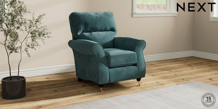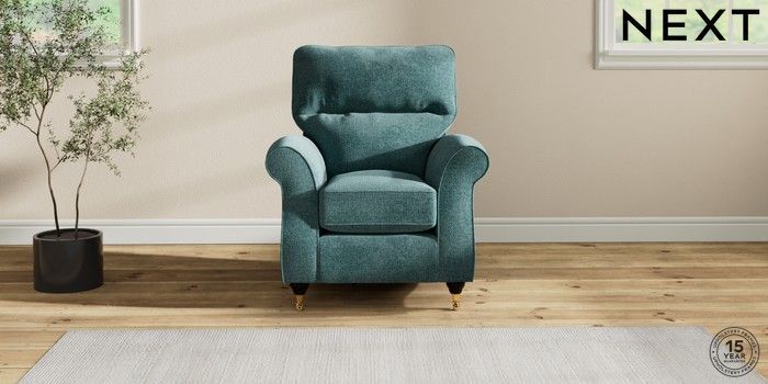 7.2.10 Ashford Highback Small Armchair Chunky Chenille Mid Teal Green Castor - Dark | Made Click here to use our website with more accessibility support, for example screen readers