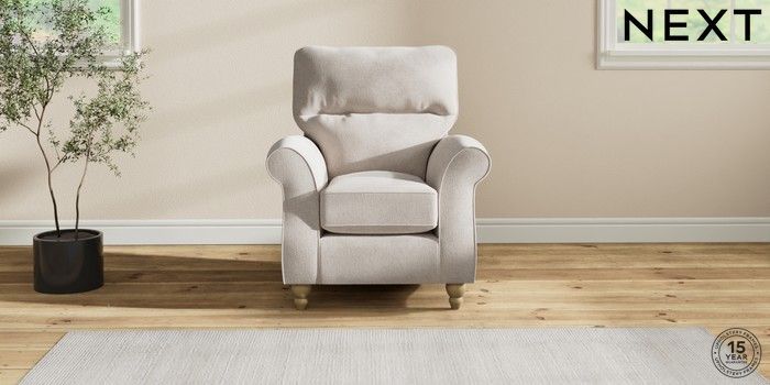 7.2.10 Ashford Highback Small Armchair Chunky Chenille Oyster Low Turned - Light | Made Click here to use our website with more accessibility support, for example screen readers