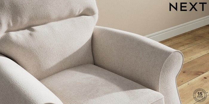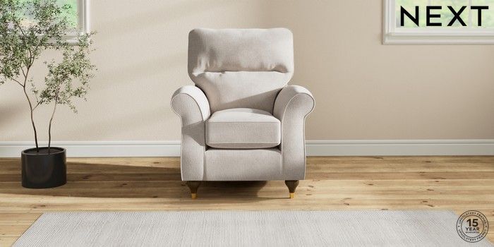 7.2.10 Ashford Highback Small Armchair Chunky Chenille Oyster Modern Turned Metal Cap - Mid | Made Click here to use our website with more accessibility support, for example screen readers