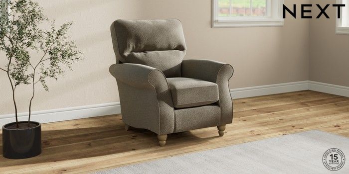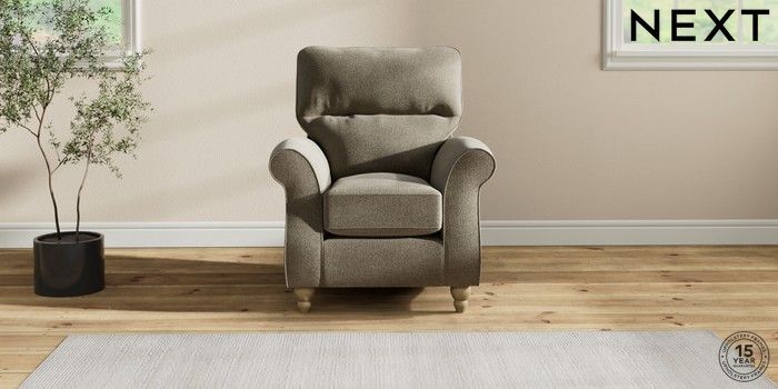 7.2.10 Ashford Highback Small Armchair Chunky Marl Light Olive Green Low Turned - Light | Made Click here to use our website with more accessibility support, for example screen readers