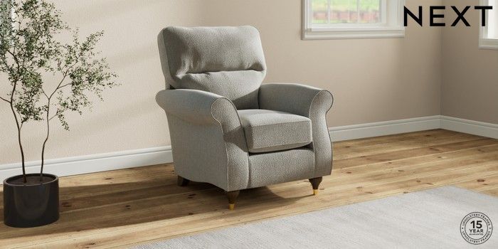 7.2.10 Ashford Highback Small Armchair Chunky Texture Dove Modern Turned Metal Cap - Mid | Made Click here to use our website with more accessibility support, for example screen readers