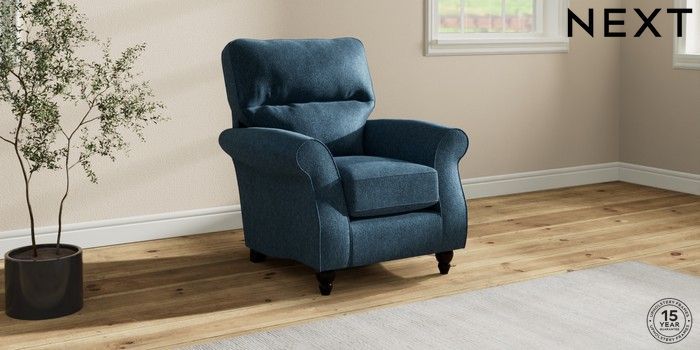 7.2.10 Ashford Highback Small Armchair Cotswold Chenille Dark Blue Low Turned - Dark | Made Click here to use our website with more accessibility support, for example screen readers