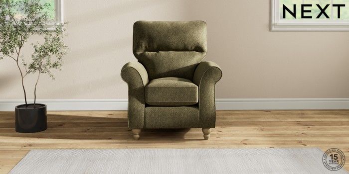 7.2.10 Ashford Highback Small Armchair Cotswold Chenille Dark Green Low Turned - Light | Made Click here to use our website with more accessibility support, for example screen readers