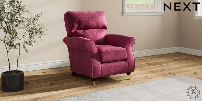 7.2.10 Ashford Highback Small Armchair Cotswold Chenille Dark Raspberry Pink Castor - Dark | Made Click here to use our website with more accessibility support, for example screen readers