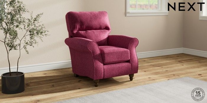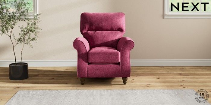 7.2.10 Ashford Highback Small Armchair Cotswold Chenille Dark Raspberry Pink Low Turned - Mid | Made Click here to use our website with more accessibility support, for example screen readers
