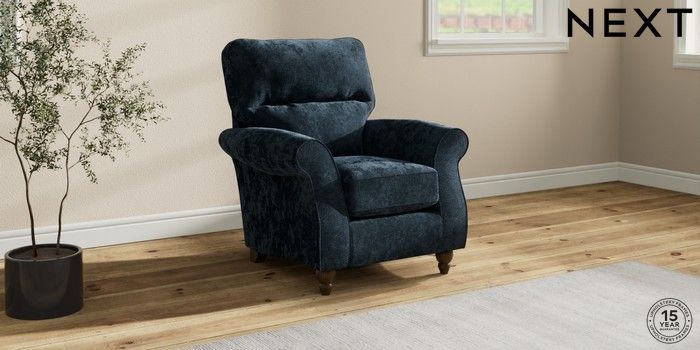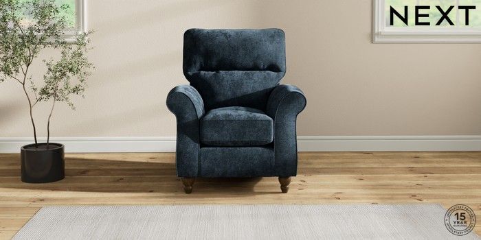7.2.10 Ashford Highback Small Armchair Distressed Velour Midnight Blue Low Turned - Mid | Made Click here to use our website with more accessibility support, for example screen readers