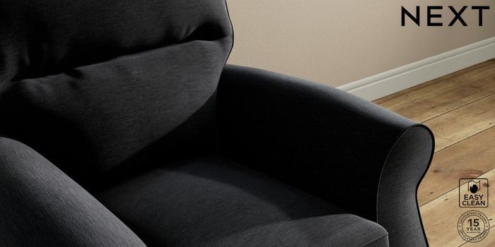 7.2.10 Ashford Highback Small Armchair Fine Chenille Easy Clean Black Castor - Mid | Made Click here to use our website with more accessibility support, for example screen readers