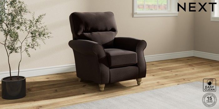 7.2.10 Ashford Highback Small Armchair Fine Chenille Easy Clean Chocolate Brown Low Turned - Light | Made Click here to use our website with more accessibility support, for example screen readers