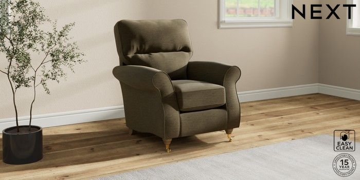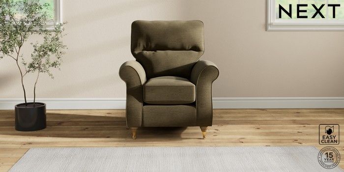 7.2.10 Ashford Highback Small Armchair Fine Chenille Easy Clean Dark Moss Green Castor - Light | Made Click here to use our website with more accessibility support, for example screen readers