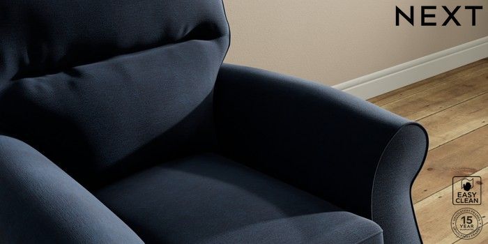 7.2.10 Ashford Highback Small Armchair Fine Chenille Easy Clean Dark Navy Blue Castor - Mid | Made Click here to use our website with more accessibility support, for example screen readers
