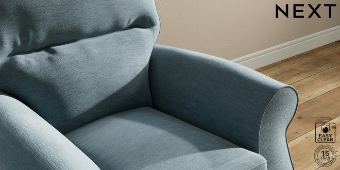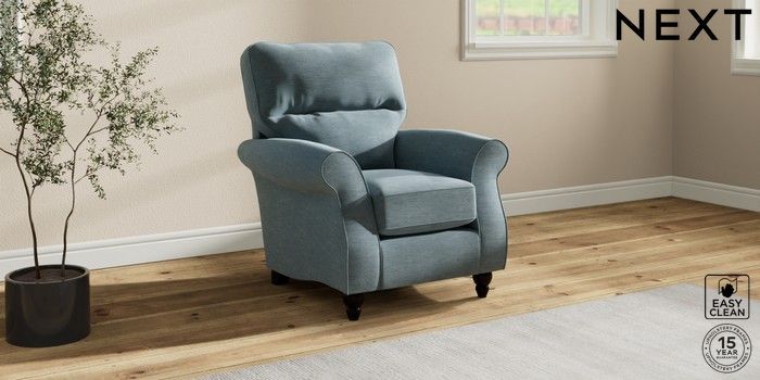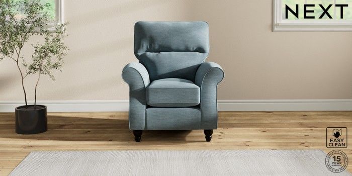 7.2.10 Ashford Highback Small Armchair Fine Chenille Easy Clean Mid Blue Low Turned - Dark | Made Click here to use our website with more accessibility support, for example screen readers