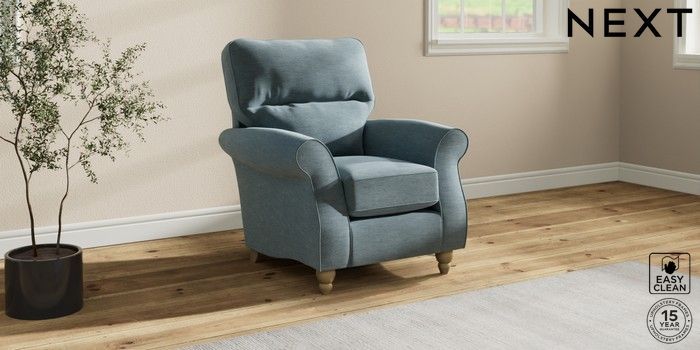 7.2.10 Ashford Highback Small Armchair Fine Chenille Easy Clean Mid Blue Low Turned - Light | Made Click here to use our website with more accessibility support, for example screen readers