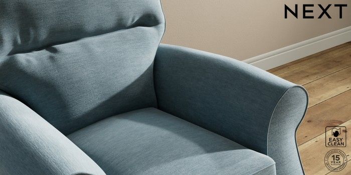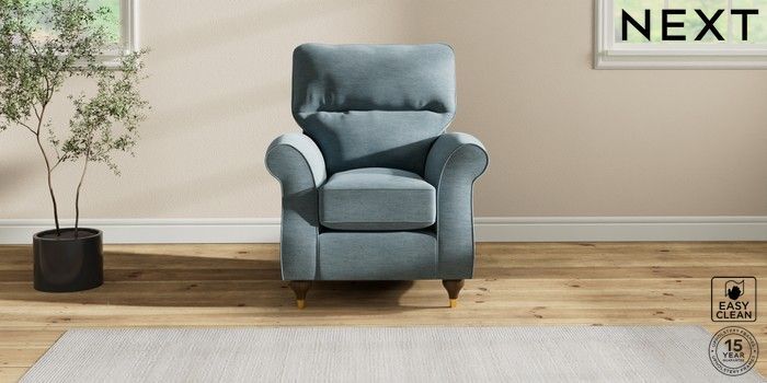 7.2.10 Ashford Highback Small Armchair Fine Chenille Easy Clean Mid Blue Modern Turned Metal Cap - Mid | Made Click here to use our website with more accessibility support, for example screen readers