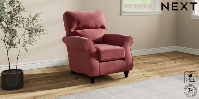 7.2.10 Ashford Highback Small Armchair Fine Chenille Easy Clean Mid Pink Low Turned - Dark | Made Click here to use our website with more accessibility support, for example screen readers
