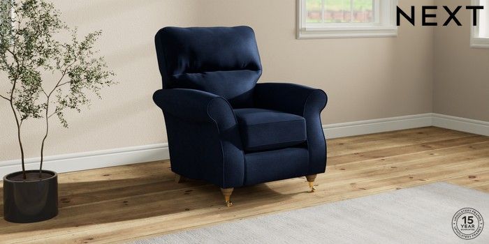 7.2.10 Ashford Highback Small Armchair Luxe Chenille Navy Blue Castor - Light | Made Click here to use our website with more accessibility support, for example screen readers