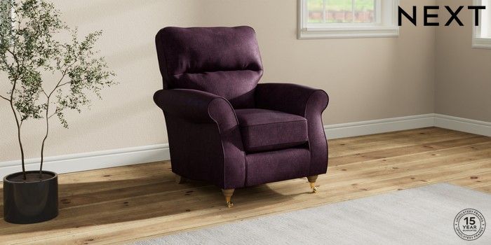 7.2.10 Ashford Highback Small Armchair Plush Chenille Dark Plum Purple Castor - Light | Made Click here to use our website with more accessibility support, for example screen readers