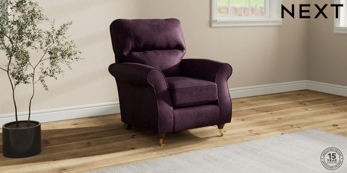 7.2.10 Ashford Highback Small Armchair Plush Chenille Dark Plum Purple Castor - Mid | Made Click here to use our website with more accessibility support, for example screen readers