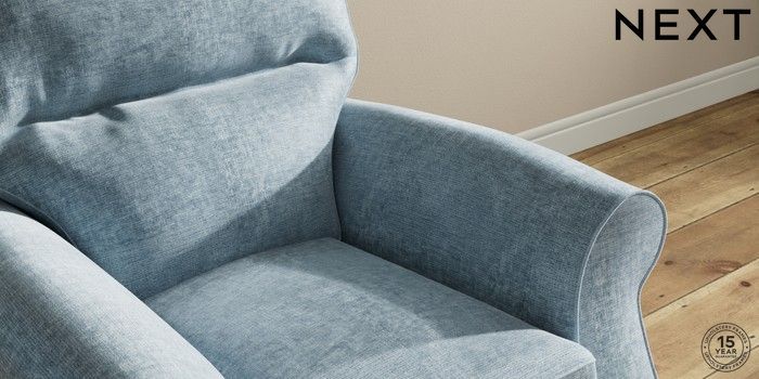 7.2.10 Ashford Highback Small Armchair Plush Chenille Light Blue Low Turned - Mid | Made Click here to use our website with more accessibility support, for example screen readers