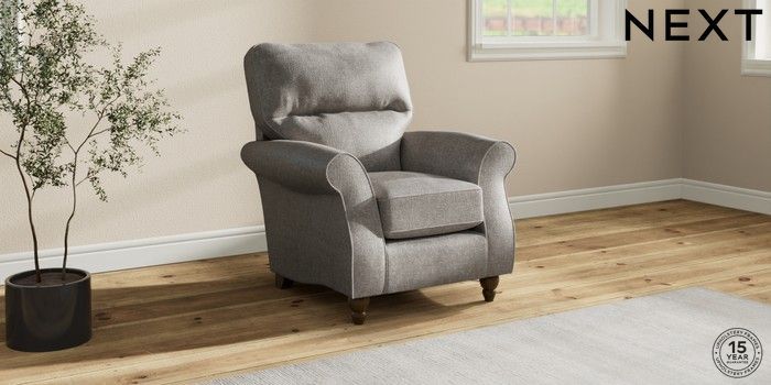7.2.10 Ashford Highback Small Armchair Plush Chenille Light Grey Low Turned - Mid | Made Click here to use our website with more accessibility support, for example screen readers