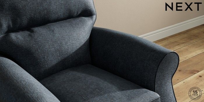 7.2.10 Ashford Highback Small Armchair Plush Chenille Slate Blue Low Turned - Light | Made Click here to use our website with more accessibility support, for example screen readers