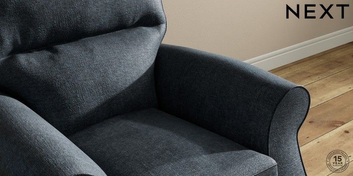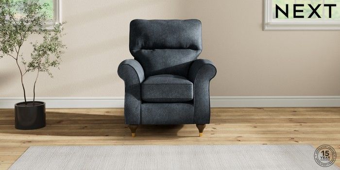7.2.10 Ashford Highback Small Armchair Plush Chenille Slate Blue Modern Turned Metal Cap - Mid | Made Click here to use our website with more accessibility support, for example screen readers