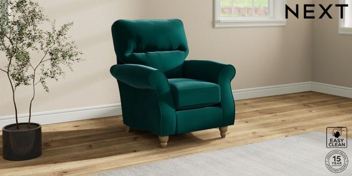 7.2.10 Ashford Highback Small Armchair Plush Velvet Easy Clean Juniper Green Low Turned - Light | Made Click here to use our website with more accessibility support, for example screen readers