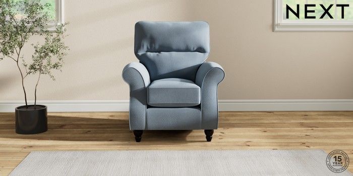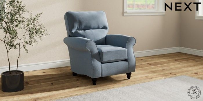 7.2.10 Ashford Highback Small Armchair Relaxed Linen Look Mid Blue Low Turned - Dark | Made Click here to use our website with more accessibility support, for example screen readers