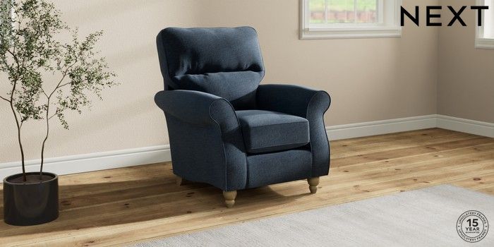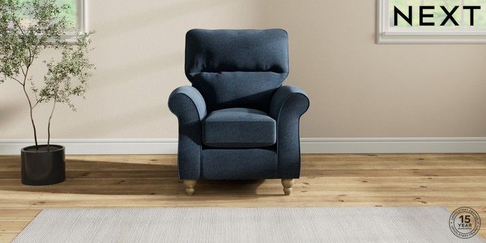 7.2.10 Ashford Highback Small Armchair Ripple Chenille Dark Blue Low Turned - Light | Made Click here to use our website with more accessibility support, for example screen readers