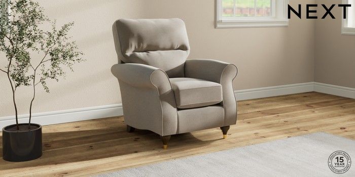 7.2.10 Ashford Highback Small Armchair Ripple Chenille Light Natural Modern Turned Metal Cap - Mid | Made Click here to use our website with more accessibility support, for example screen readers