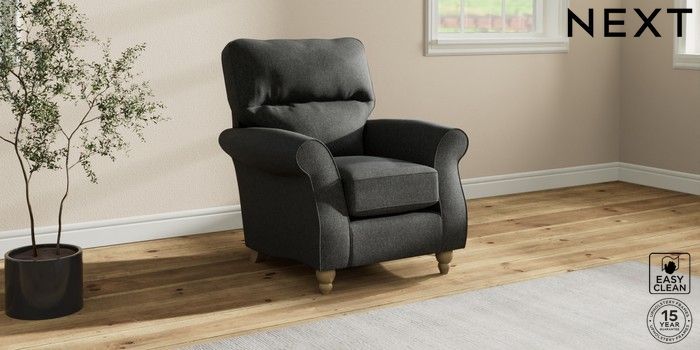 7.2.10 Ashford Highback Small Armchair Tweedy Blend Easy Clean Charcoal Grey Low Turned - Light | Made Click here to use our website with more accessibility support, for example screen readers