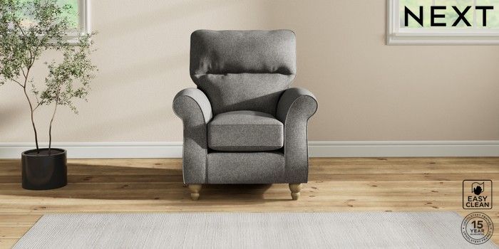 7.2.10 Ashford Highback Small Armchair Tweedy Blend Easy Clean Dark Grey Low Turned - Light | Made Click here to use our website with more accessibility support, for example screen readers
