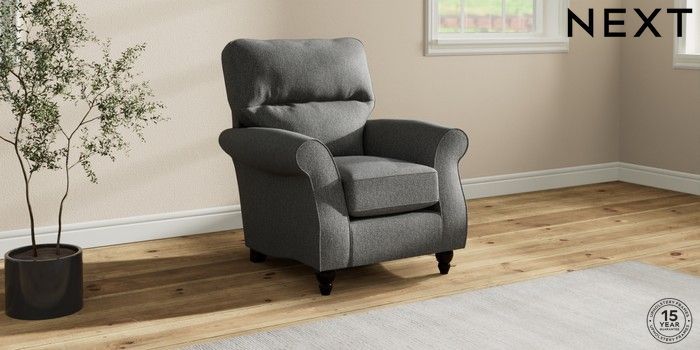 7.2.10 Ashford Highback Small Armchair Tweedy Chenille Dark Grey Low Turned - Dark | Made Click here to use our website with more accessibility support, for example screen readers