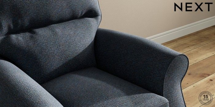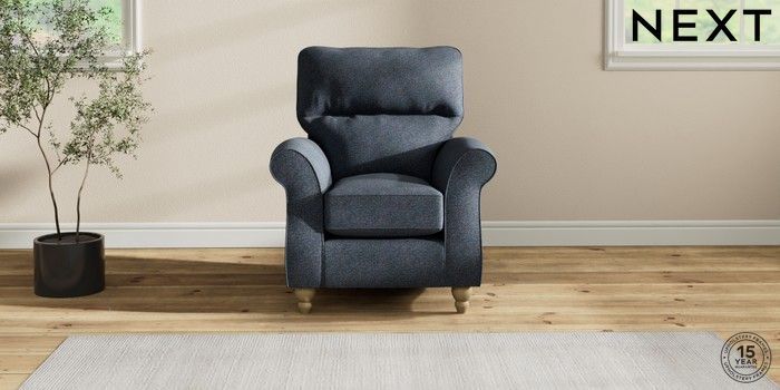 7.2.10 Ashford Highback Small Armchair Tweedy Chenille Navy Blue Low Turned - Light | Made Click here to use our website with more accessibility support, for example screen readers