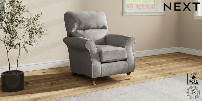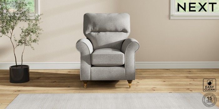 7.2.10 Ashford Highback Small Armchair Woven Chenille Easy Clean Light Grey Castor - Mid | Made Click here to use our website with more accessibility support, for example screen readers