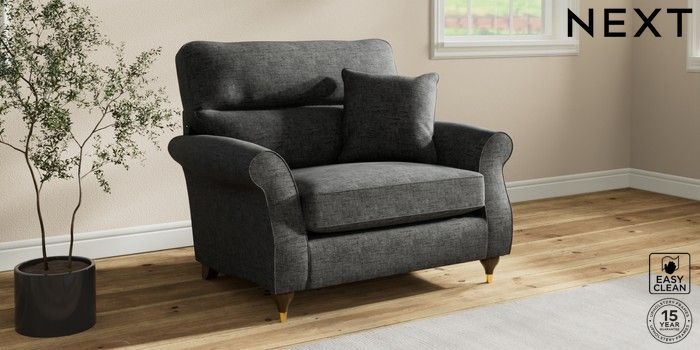 7.2.10 Ashford Highback Snuggle Boucle Weave Easy Clean Charcoal Grey Modern Turned Metal Cap - Mid | Made Click here to use our website with more accessibility support, for example screen readers