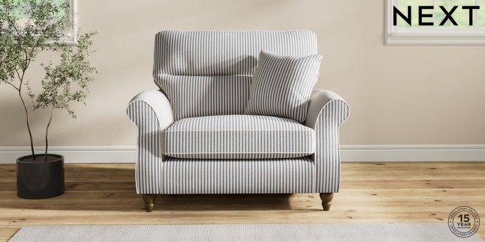 7.2.10 Ashford Highback Snuggle Chenille Stripe Slate Blue Low Turned - Mid | Made Click here to use our website with more accessibility support, for example screen readers