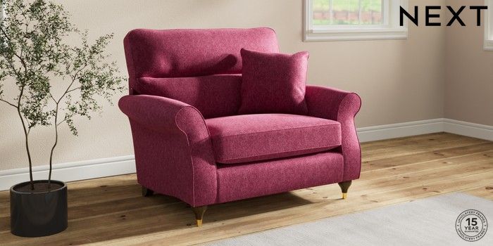 7.2.10 Ashford Highback Snuggle Cotswold Chenille Dark Raspberry Pink Modern Turned Metal Cap - Mid | Made Click here to use our website with more accessibility support, for example screen readers