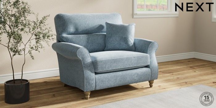 7.2.10 Ashford Highback Snuggle Plush Chenille Light Blue Low Turned - Light | Made Click here to use our website with more accessibility support, for example screen readers