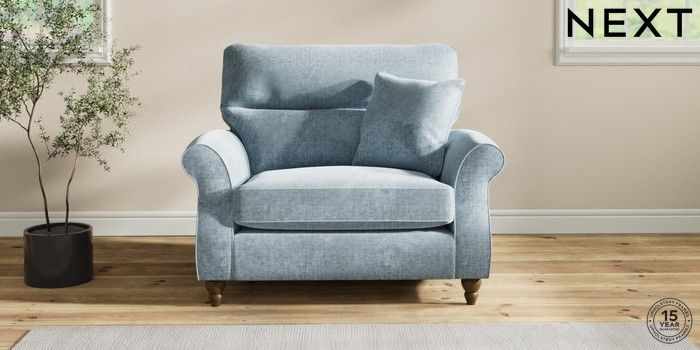 7.2.10 Ashford Highback Snuggle Plush Chenille Light Blue Low Turned - Mid | Made Click here to use our website with more accessibility support, for example screen readers
