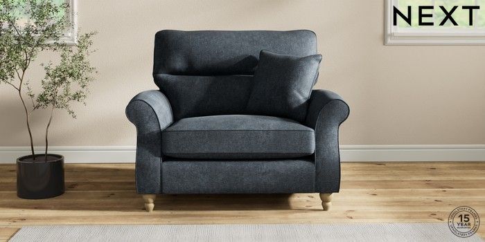 7.2.10 Ashford Highback Snuggle Plush Chenille Slate Blue Low Turned - Light | Made Click here to use our website with more accessibility support, for example screen readers