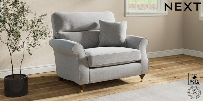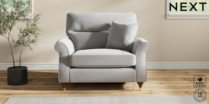 7.2.10 Ashford Highback Snuggle Tweedy Blend Easy Clean Light Silver Grey Modern Turned Metal Cap - Mid | Made Click here to use our website with more accessibility support, for example screen readers
