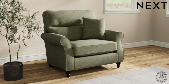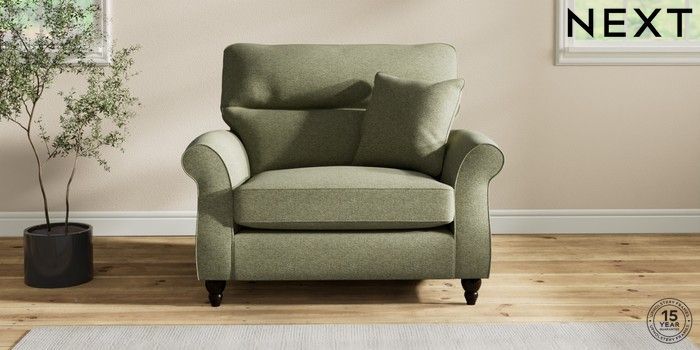 7.2.10 Ashford Highback Snuggle Tweedy Chenille Mid Moss Green Low Turned - Dark | Made Click here to use our website with more accessibility support, for example screen readers