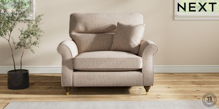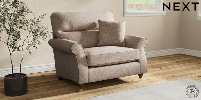 7.2.10 Ashford Highback Snuggle Tweedy Chenille Mid Natural Modern Turned Metal Cap - Mid | Made Click here to use our website with more accessibility support, for example screen readers
