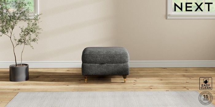 7.2.10 Ashford Highback Storage Footstool Boucle Weave Easy Clean Charcoal Grey Castor - Mid | Made Click here to use our website with more accessibility support, for example screen readers