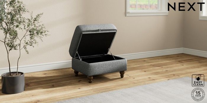 7.2.10 Ashford Highback Storage Footstool Chunky Boucle Easy Clean Mid Grey Low Turned - Mid | Made Click here to use our website with more accessibility support, for example screen readers