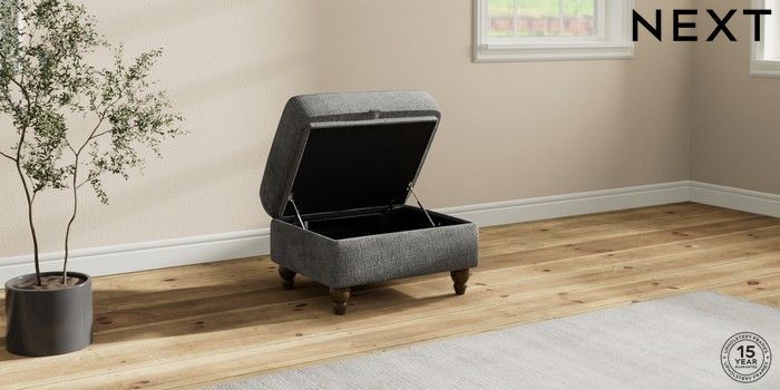 7.2.10 Ashford Highback Storage Footstool Chunky Chenille Dark Grey Low Turned - Mid | Made Click here to use our website with more accessibility support, for example screen readers