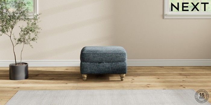 7.2.10 Ashford Highback Storage Footstool Chunky Chenille Dark Navy Blue Low Turned - Light | Made Click here to use our website with more accessibility support, for example screen readers