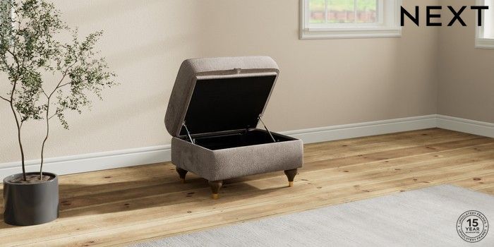 7.2.10 Ashford Highback Storage Footstool Chunky Chenille Light Dove Modern Turned Metal Cap - Mid | Made Click here to use our website with more accessibility support, for example screen readers