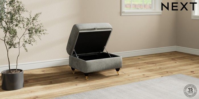 7.2.10 Ashford Highback Storage Footstool Chunky Chenille Light Grey Castor - Dark | Made Click here to use our website with more accessibility support, for example screen readers