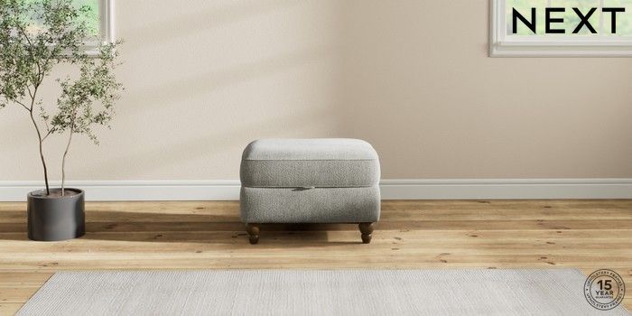 7.2.10 Ashford Highback Storage Footstool Chunky Chenille Light Grey Low Turned - Mid | Made Click here to use our website with more accessibility support, for example screen readers